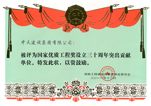 国家优质工程奖设立三十周年突出贡献单位